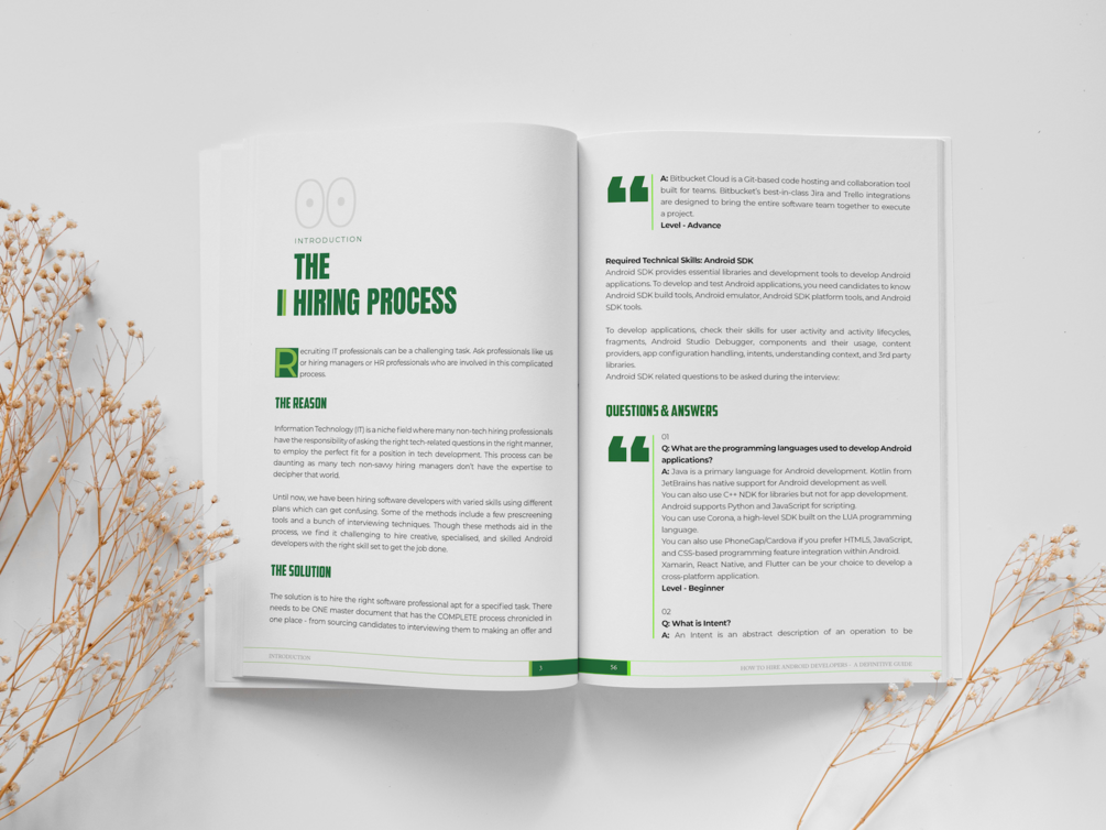 This definitive guide is designed to help you concisely plan, create precise job descriptions, create ample awareness about the job on hiring channels of various kinds, shortlist candidates in the right manner by asking them the most relevant questions, and picking the candidate most suited for any designated position - junior, mid-level, or senior-level Android developer.